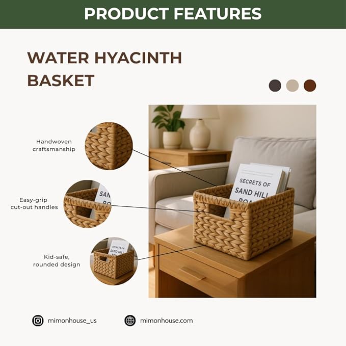 - [Natural Woven Storage Basket - Handcrafted Excellence] Transform your space with our premium wicker storage basket, meticulously handwoven by skilled Vietnamese artisans using 100% natural water hyacinth. Perfect as organizing baskets for any room, these eco-friendly small storage baskets are crafted without harmful chemicals, making them ideal for nursery organization and safe for your entire family. Each woven basket brings the perfect blend of functionality and natural elegance to your home.