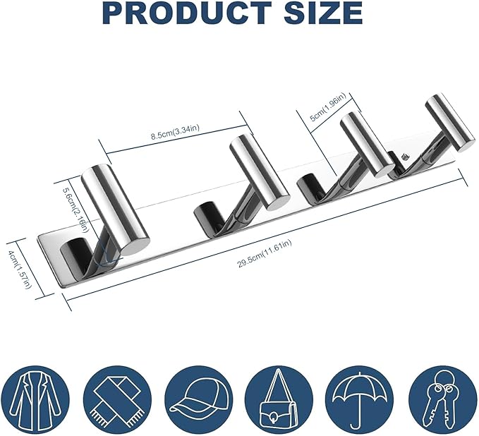 - Versatile Use: This Polished Chrome Row Hook Coat Rack for various locations, including bathrooms, kitchens, living rooms, entrances, and offices. Use it to hang towels, kitchenware, coats, hats, jackets, wallets, keys, and more, adding functionality and organization to your space.