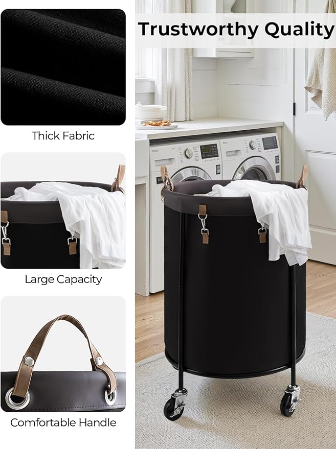 - Durable Construction: This laundry basket combines thick iron pipes and premium Martin fabric, creating a sturdy frame with reinforced support for long-lasting durability, even when rolling or fully loaded.