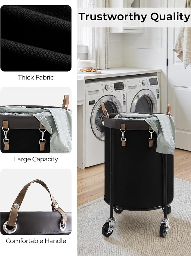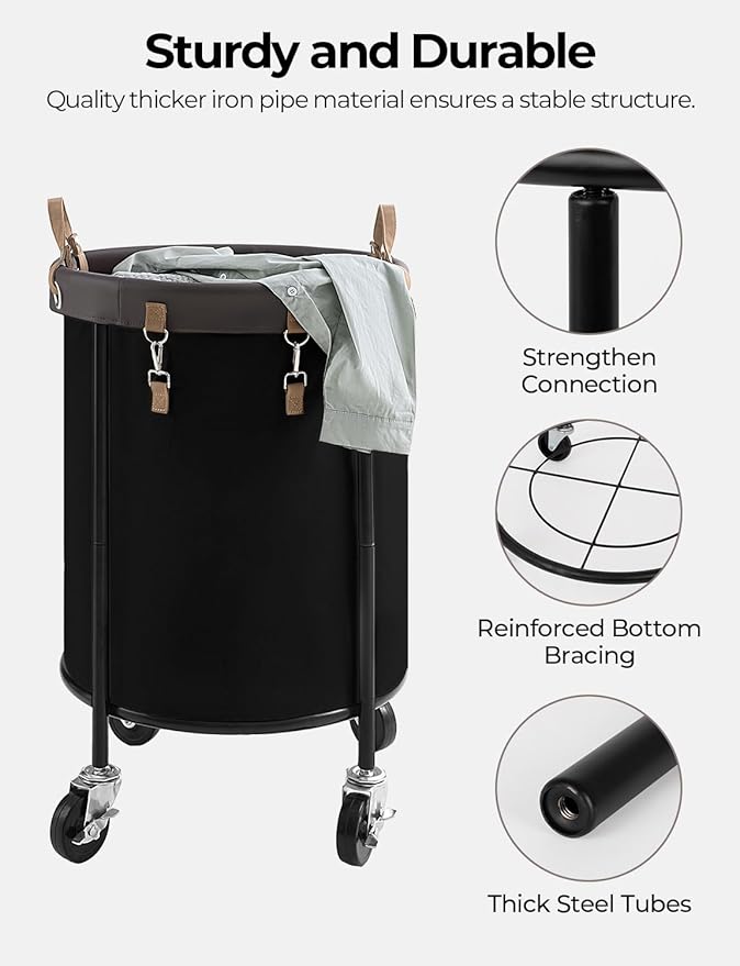 - Durable Construction: This laundry basket combines thick iron pipes and premium Martin fabric, creating a sturdy frame with reinforced support for long-lasting durability, even when rolling or fully loaded.