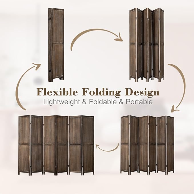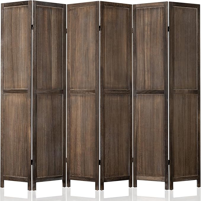 WelFurGeer 6 Panel Room Divider Screen - 360° Adjustable Folding Panels for Privacy, Bedroom, Living Room & Patio, Handcrafted Decorative Room Divider, Freestanding Divider for Room Separation (Brown)