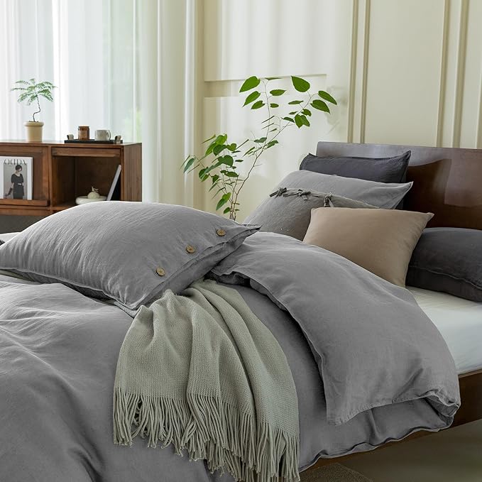 - 100% NATURAL LINEN: EVERLY pure linen duvet cover set is made of premium French grown flax, help you fall asleep faster and sleep sounder. With antistatic, the bedding set is friendly for allergies