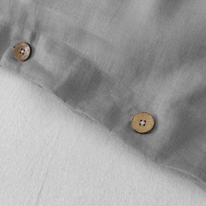 EVERLY 100% Pure Linen Duvet Cover Set Twin Size 68X90Inch 2pcs (1 Duvet Cover,1Pillowcases) Soft and Breathable for All Season with Coconut Button Closure, Suitable for Hot Sleepers-Grey