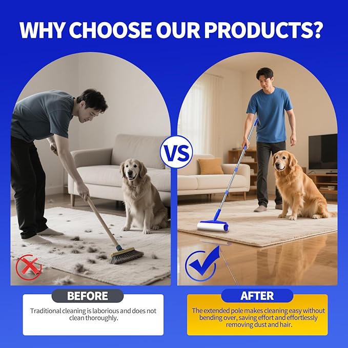 - Extra Sticky Superior Adhesive: Designed to outperform, this long lint roller features super sticky sheets that pick up even the toughest pet hair, lint, and dust with ease, leaving your floors and furniture spotless.