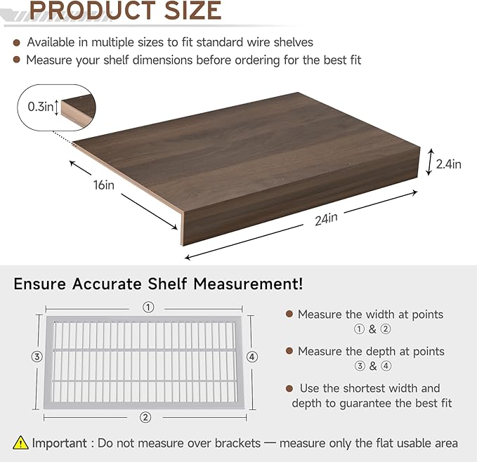 Wooden Wire Shelf Covers for Pantry & Closet – Wire Rack Covers for Shelves, Durable Wood Shelf Covers for Kitchen, Laundry Room, Storage Organization(Walnut,24in*16in)