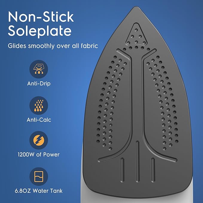 - Convenience Features: The large 6.42 fl oz (190ml) water tank lets you iron longer without stopping, while the self-clean and anti-calc systems keep your iron in top condition for years of reliable use