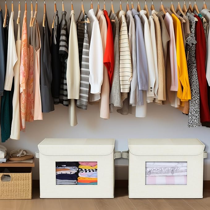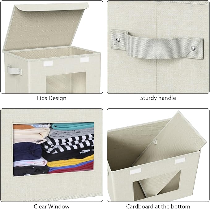 - 【Clear window】The see-through window design allows you to easily view the items inside the closet organizer bin without opening it,making it easy for you to quickly access your items, especially when you place multiple storage organizers in the closet, this design is very useful and brings more convenience to your life.