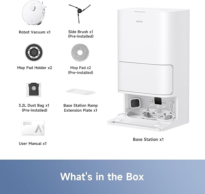 Mova E40 Ultra Robot Vacuum and Mop, 19,000Pa Suction, Extenable & Liftable Mop, All-in-One Station, Auto-Empty, Auto Washing & Hot Air Drying, 360°Obstacle Avoidance, App & Voice Control