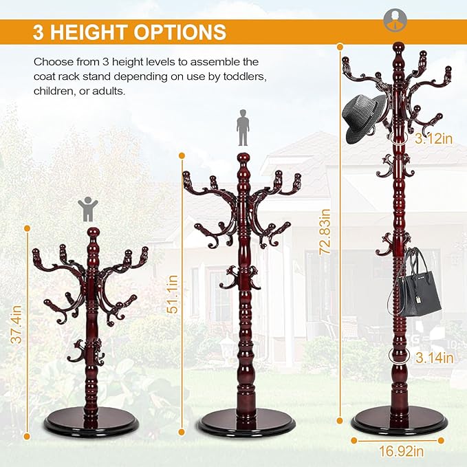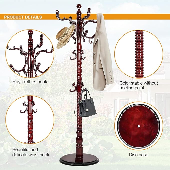 - AAAAA Grade Birch wood Material: This coat rack is made of eco-friendly paint and natural birch for a sturdy, vintage-inspired elegance. The solid, thickened round base provides excellent stability. The freestanding coat rack can hold up to 200 pounds, making it easy to hang multiple pieces of clothing without wobbling.