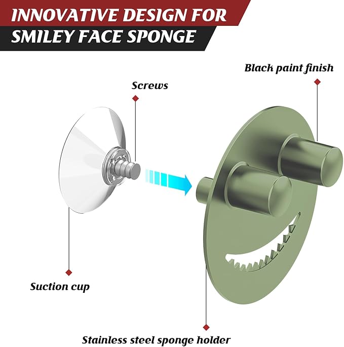 - EASY INSTALLATION:The suction cup sink caddy don't need tools or drilling, the screws and suction cups are integrated. Lease clean the sink and keep it dry before installation. Then, simply rinse the suction cups and press the sponge holder to the surface of the sink and squeezing out the air to hold it firmly in place. Just put your smiley sponge on the sponge holder