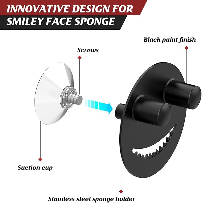 - EASY INSTALLATION:The suction cup sink caddy don't need tools or drilling, the screws and suction cups are integrated. Lease clean the sink and keep it dry before installation. Then, simply rinse the suction cups and press the sponge holder to the surface of the sink and squeezing out the air to hold it firmly in place. Just put your smiley sponge on the sponge holder