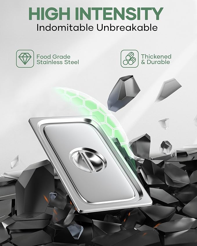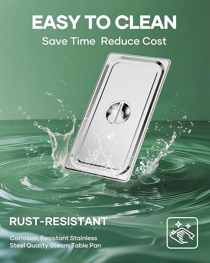 - EFFORTLESS CLEANING: The smooth, mirror-polished surface resists food sticking, making cleaning a breeze. Dishwasher-safe for effortless maintenance. The stackable design helps save space in busy kitchens, making these hotel pan covers 1/3 size a practical solution for both commercial and home kitchens.