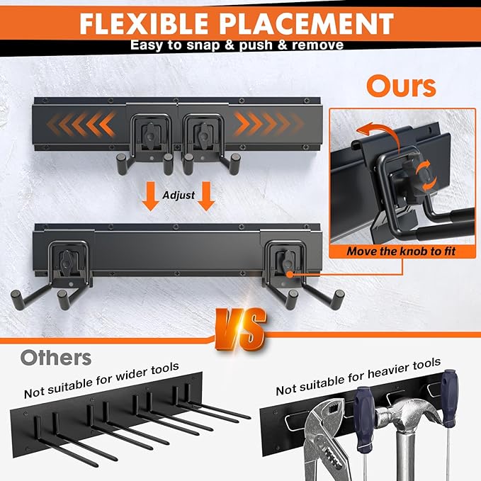 - Quick and Easy Installation: Comes with clear instructions for hassle-free setup. Modify the hook positions effortlessly as your storage needs evolve, creating a tailored tool wall in minutes.