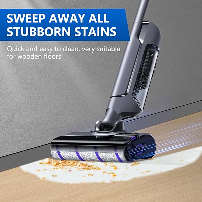 - 【Premium Material】:The roller brush has dense and soft bristles that fit closely to the floor and efficiently cleans stubborn stains on the floor without leaving water spots. No dust is left in the crevices of the corner edges. The vacuum filter effectively blocks airborne particles from entering the vacuum cleaner, protecting it from normal operation and enabling it to do a great job of cleaning.