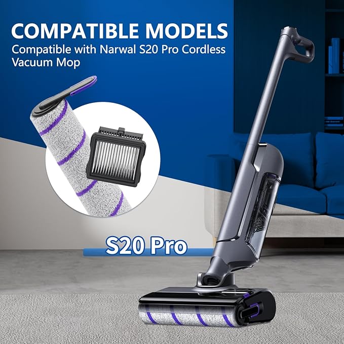 - 【Fully Compatible】: The replacement roller brush and vacuum filters compatible with narwal S20 Pro wet dry vacuum cleaner.Not compatible with other series of vacuum cleaners. Before purchasing, please refer to the product image to confirm your accessory model and size.