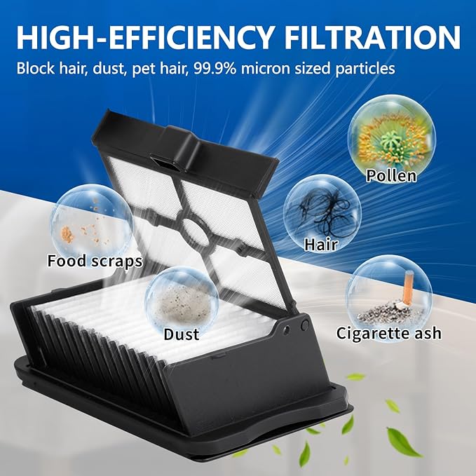 - 【Regular Replacement】: The old roller bristles get tangled in the hair, causing the vacuum to have less suction power to clean the floor and leave residue on the floor. Old filter clog the airflow and can't really filter out particles that get inside the machine, making the vacuum cleaner less effective at vacuuming. Suggested replacement cycle: 3 months for the filter, 6-12 months for the rollers (according to the frequency of use and personal living environment).