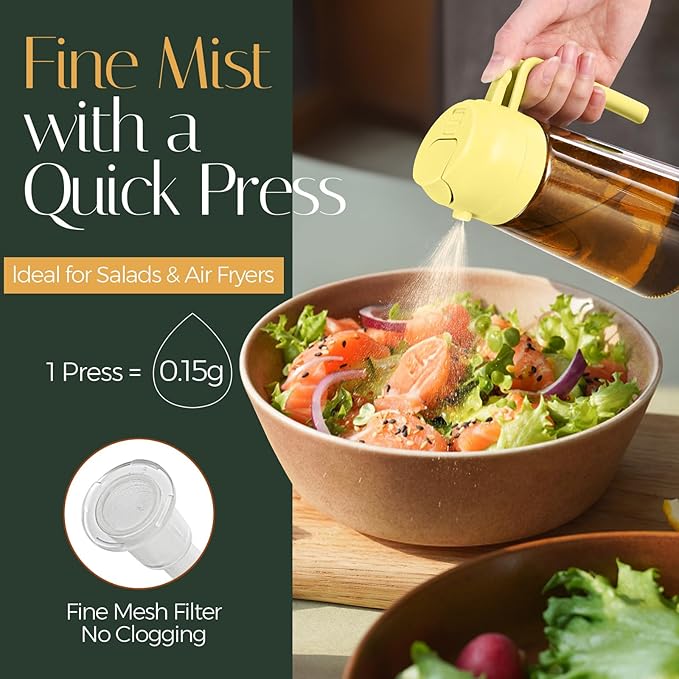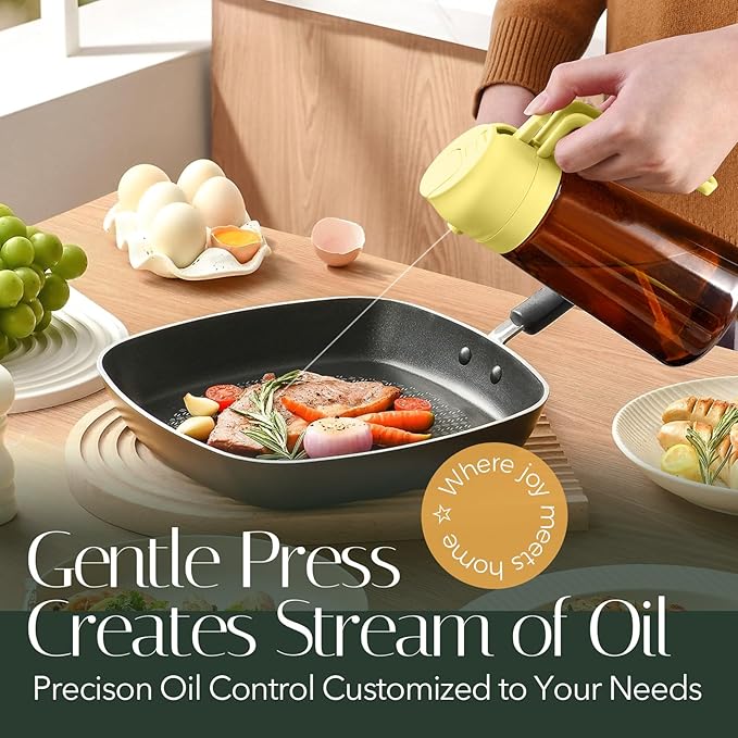 - 【Dual-Function Design & Multi-Purpose】: Oil mister spray bottle for cooking offers the convenience of both spraying and pouring oil, suitable for a wide range of food preparation processes such as salad dressing, griddle, roasting, grilling