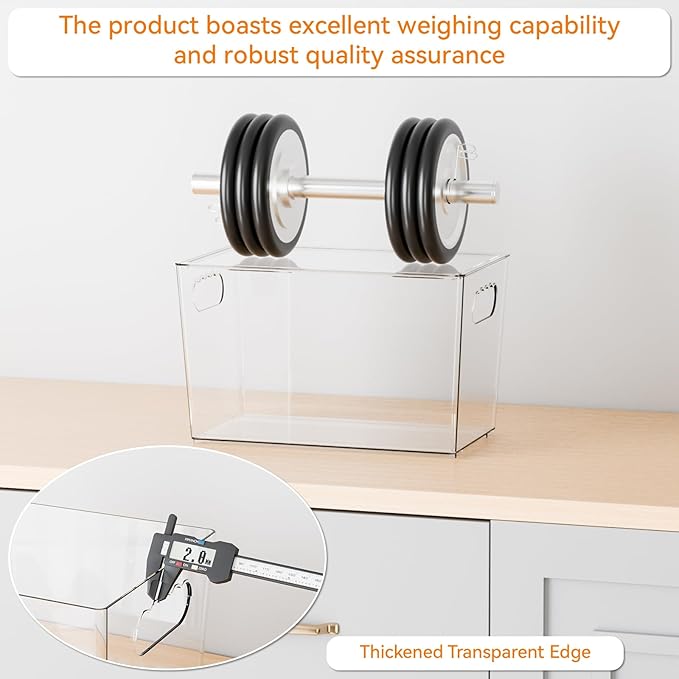 - 【Clear Basket/Easy to Find】These acrylic bins for organizing are versatile enough to fit easily in your fridge,refrigerator,cabinet,under sink and pantry shelves, and cabinets, make your storage easier and help to keep your look neat and organized