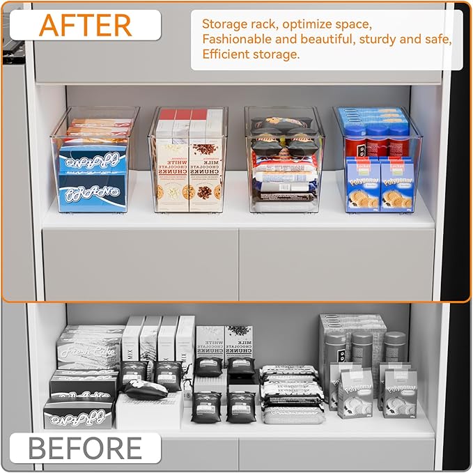 - 【Stackable/Clear View】The brightroom clear material makes it easy to see what each storage bin contains, these bins keep your items visible and organized. Built-in handles allow for easy access and portability. Their stackable design maximizes vertical space, making them ideal for efficient kitchen organization and home tidiness