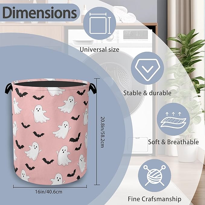 - Unique Design:This Bat Ghost Halloween laundry basket adopts a foldable design.When not in use,it can be folded and stored to save space.There are handles on both sides for easy grip,making it easy to pick up and move.