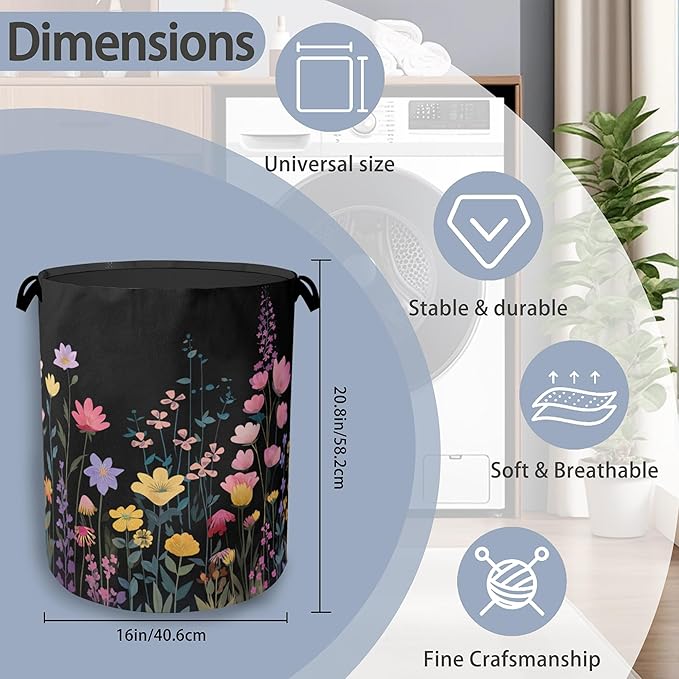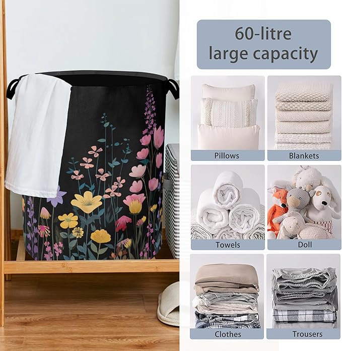 - Unique Design:This Vintage Wildflowers Garden Herb laundry basket adopts a foldable design.When not in use,it can be folded and stored to save space.There are handles on both sides for easy grip,making it easy to pick up and move.