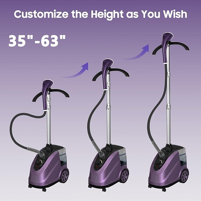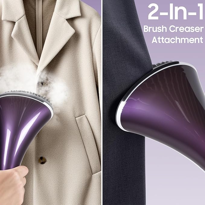 - 【Handheld design for heavy duty task】Lightweight yet built for heavy use, this steamer’s ergonomic grip and included pro accessories (garment hanger, heat-resistant gloves, fabric brush) make it ideal for steaming clothes, upholstery, or curtains effortlessly