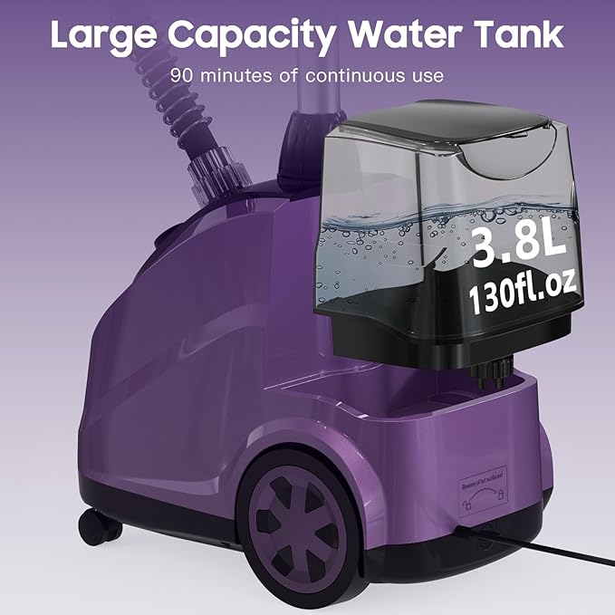 - 【Extra-Large 3.8L Water Tank】Designed for heavy-duty use, the 3.8L high-capacity tank eliminates constant refills, delivering 90 minutes of continuous steam—perfect for tackling large laundry piles, commercial needs, or whole-family outfits in one go