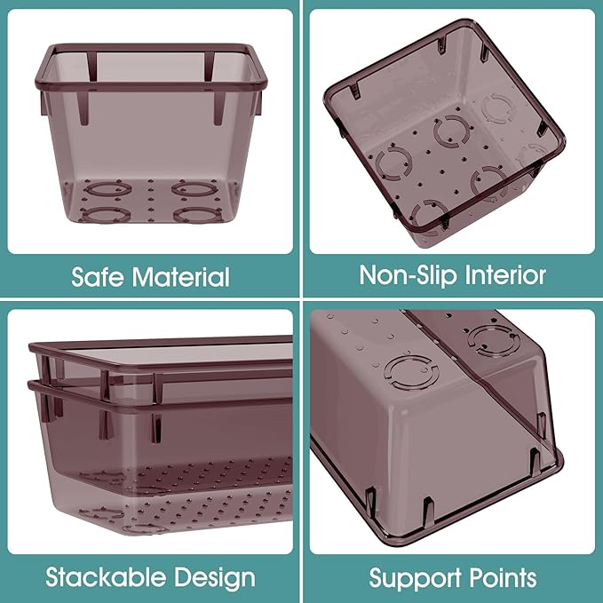 - Long Lasting and Non-Slip: The plastic is robust and long lasting. The bottom of the storage organizers has a non-slip design to prevent the tray from moving around when the drawer is used