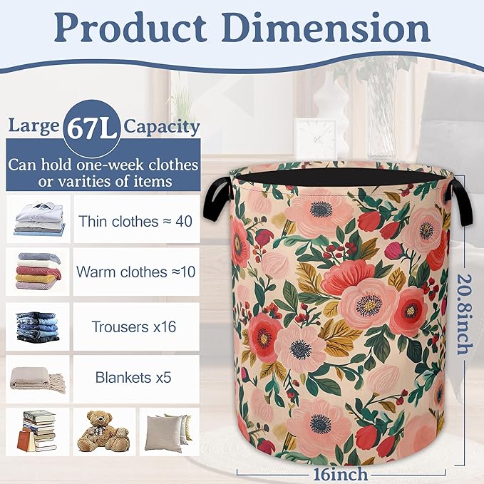 - 67L Large Capacity:Measuring 20.8" (H) × 16" (D), 67 L,the laundry basket offers ample capacity for clothes, towels, blankets and more. for use in families, college students, or anyone needing extra storage space in a stylish design.