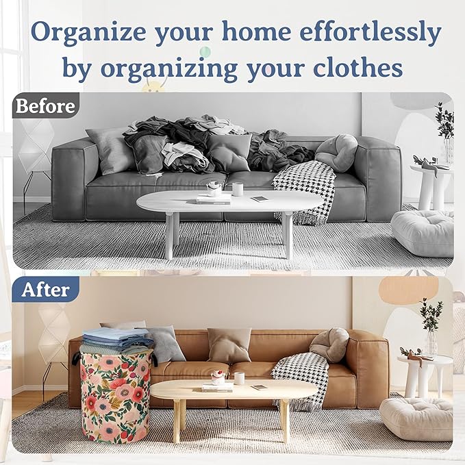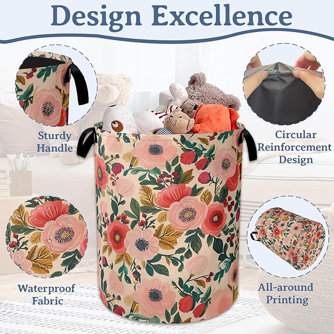 - Foldable Freestanding Design:The Vintage Flowers Blossom Vintage Floral laundry basket folds flat for compact storage when not in use, saving space. When in use, it stands upright and holds its shape without collapsing, making it easy to toss clothes in or take them out.