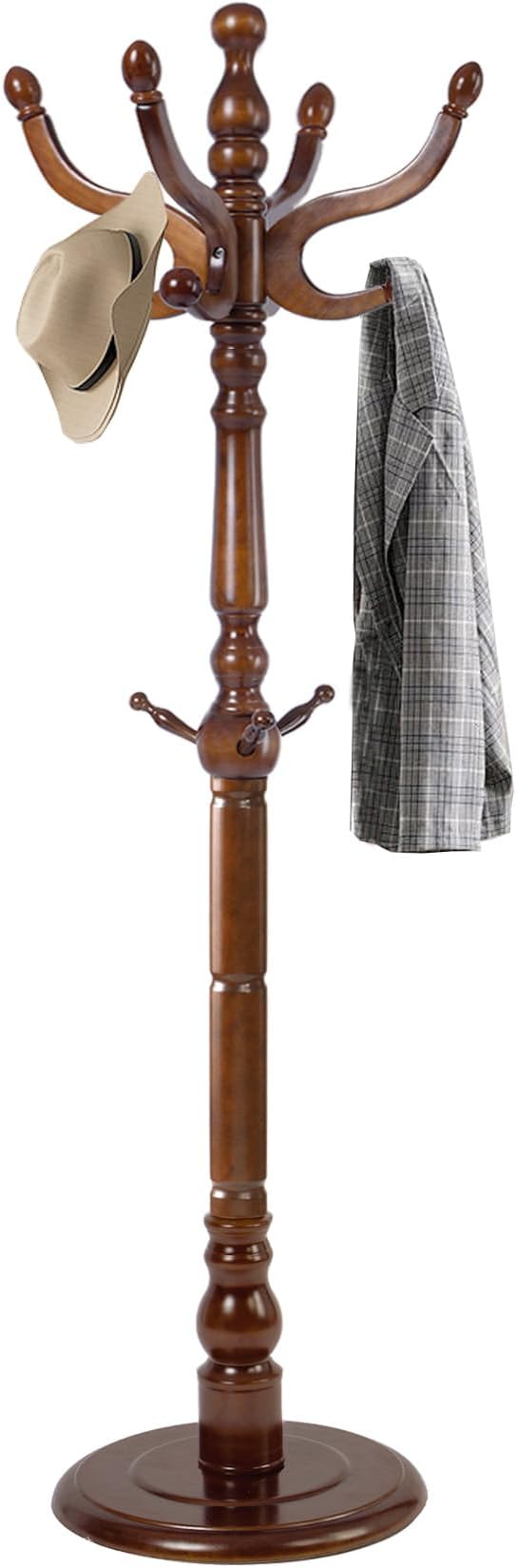 Wood Coat Rack, Heavy Duty Coat Rack Freestanding with 11 Smooth Hooks, Vintage Coat Tree, Clothes Hanger Stand with Stable Disc Base for Entryway, Bedroom (Walnut Brown)