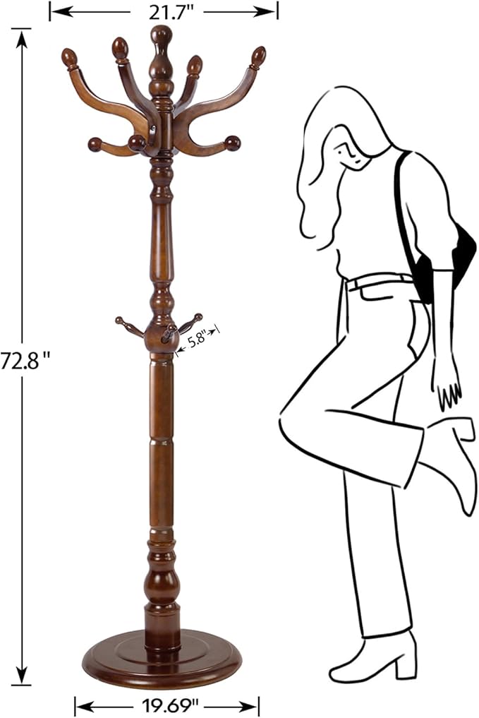 - Any Space: Whether in the entryway, bedroom, or office, this vintage-style coat rack stand combines practicality and elegance. Its elegant silhouette and rich wood tones complement classic, farmhouse, or country interiors.