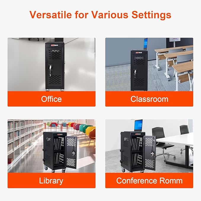 - 【Suitable for Most Scenarios】Aokleo laptop charging station with 16 outlets offers fast charging and secure storage functionality. The lockable laptop charging station is suitable for use in classrooms, offices, libraries, hospitals, clinics, exhibitions, cafes, airports, training centers, and other venues.
