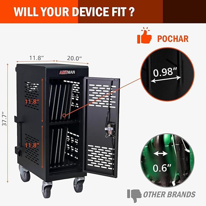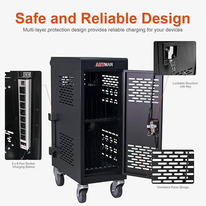 - 【Charging Cable Management】Cable management strips allow you to neatly organize power cables. The front and rear doors can be fully opened for easy access to computers and charging cables. Even when fully loaded with 16 devices, you can avoid the hassle of tangled cables.
