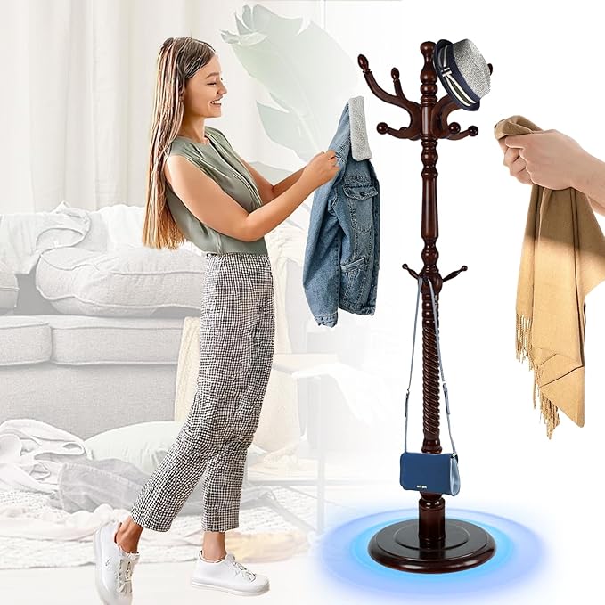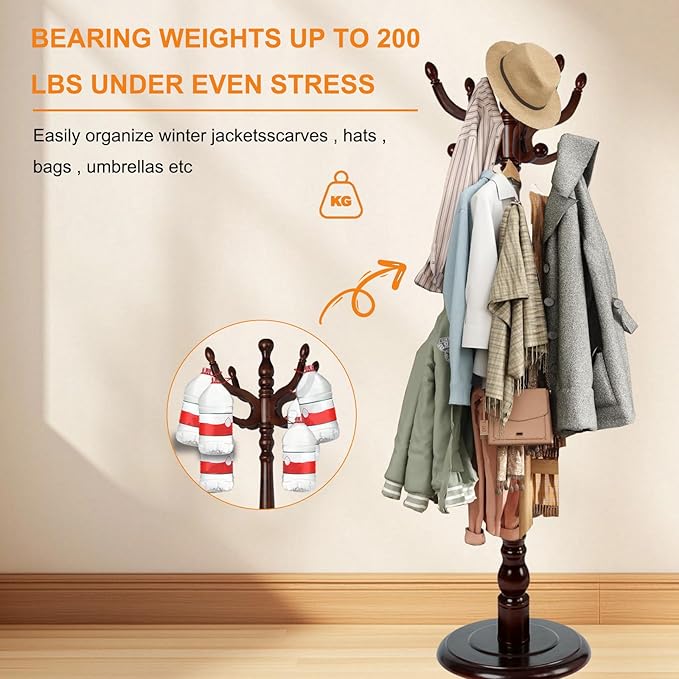 - Solid Wood Material: The coat racks is made of natural birch wood with hard texture and exquisite carving. Thickened round base offers excellent stability. The entire coat rack features a vintage design making it so generous.