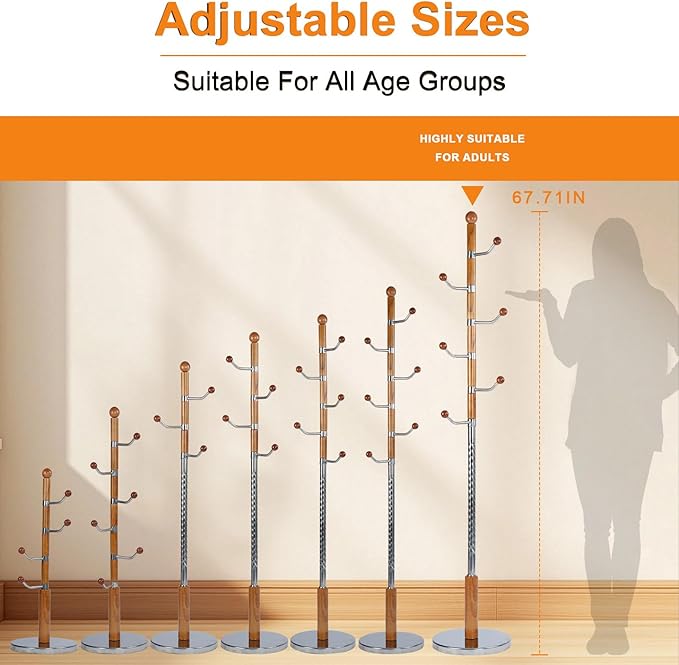 - Adjustable Height: The total height of the narrow coat rack is 72 inches. Its 4 sections are removable and each section is independent, you can customize the height as you need! You can use 2-3 sections for kids and 4 sections for adults. This freestanding coat rack is suitable for homes, bedrooms, offices, entrance halls, foyers, apartments, hotels and more!