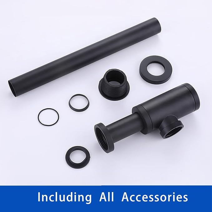 - 【High Quality Materials】This black p-trap for bathroom sink, made of brass and stainless steel construction, durable and rust-resistant. Sleek matte black finish that perfectly complements your bathroom style. This matte black p trap can be used with glass, vessel, vanities, pedestal, or wall mounted washbasins with exposed plumbing parts.