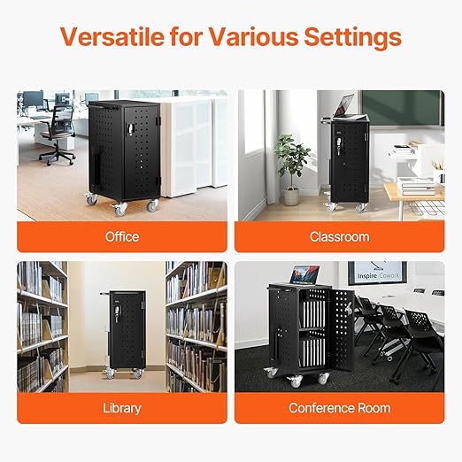 - Versatile for Multiple Environments: Whether in offices, classrooms, libraries, hospitals, or exhibitions, this chromebook charging cart seamlessly adapts to diverse settings. It delivers consistent, reliable performance to meet the device charging needs of any professional space