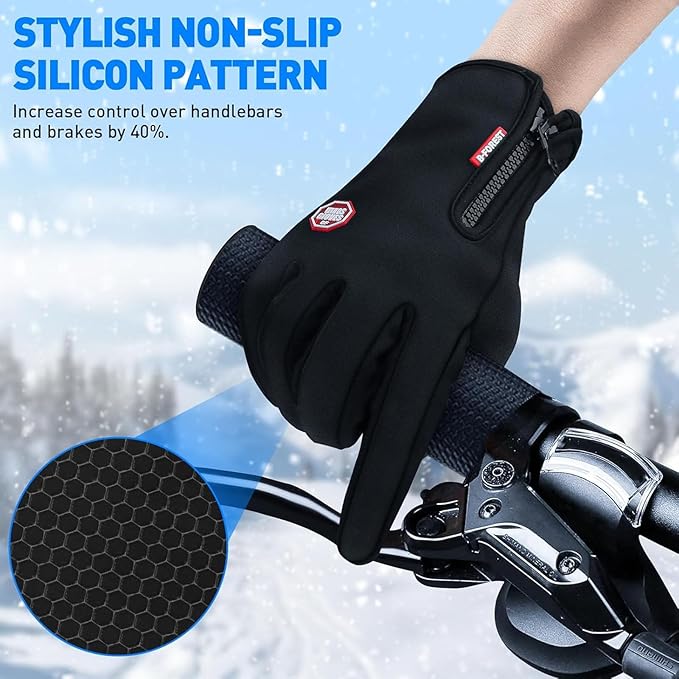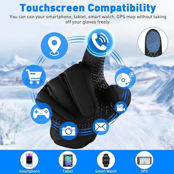 - Waterproof & Windproof Protection:Built with a durable outer layer, these gloves repel wind, rain, and snow, providing reliable protection against harsh winter elements. Whether you're walking, running, or caught in a sudden snow flurry, stay dry and warm with these Waterproof & Windproof Thermal Gloves.